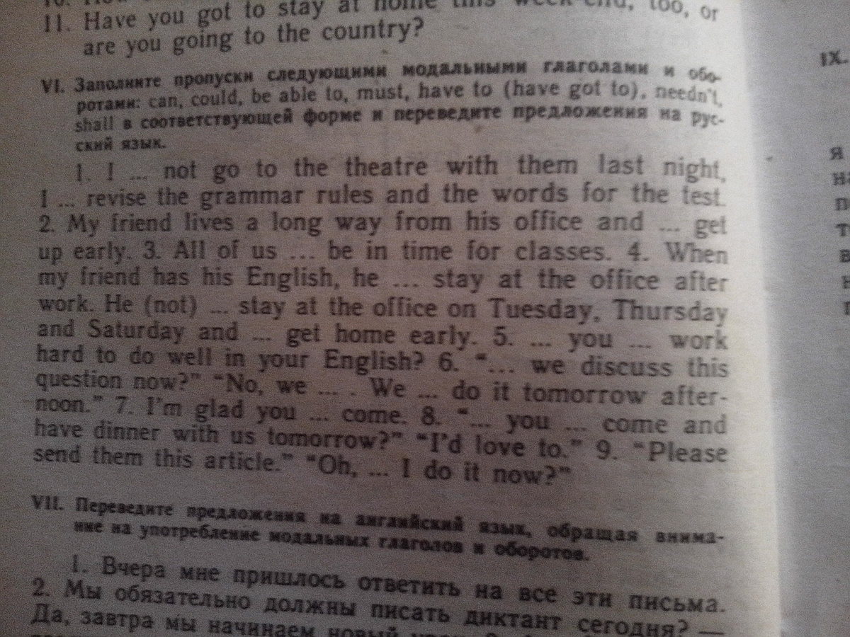 4. When my friend has English he has to stay at the office after work. He needn't stay at the office on Tuesday, Thursday and Saturday and may get home early.