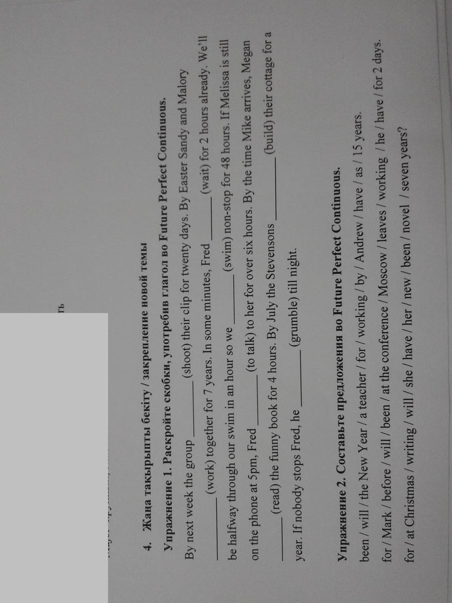 1) will have been shooting; 2) will have been working; 3)will have been waiting; 4) will have been swimming; 5) will have been talking; 6) will have been reading; 7) will have been building; 8) will have been grumbling