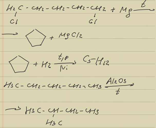1,5-дихлорпентан - циклопентан - пентан - изопентан