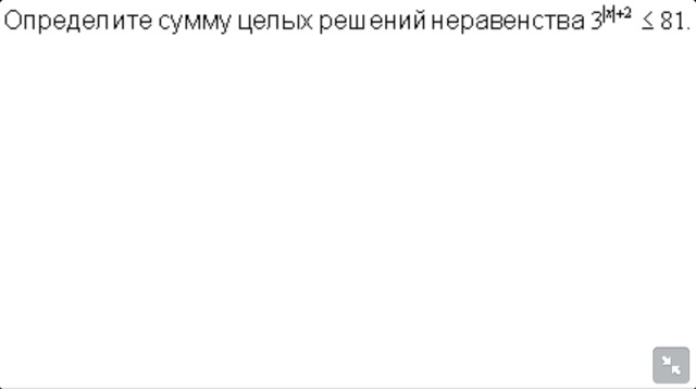3^{|x|+2}leq81\ 3^{|x|+2}leq3^4\ |x|+2leq4\ begin{cases} x+2leq4\ -x+2leq4 end{cases}Rightarrow begin{cases} xleq2\ xgeq-2 end{cases}Rightarrow xin[-2;2]\ S=(-2)+(-1)+0+1+2=-2-1+0+1+2=0