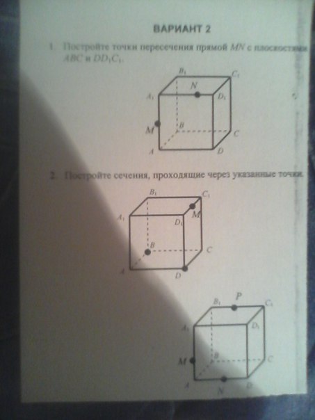 1. Постройте точки пересечения прямой MN с плоскостями ABC и DD1C1.