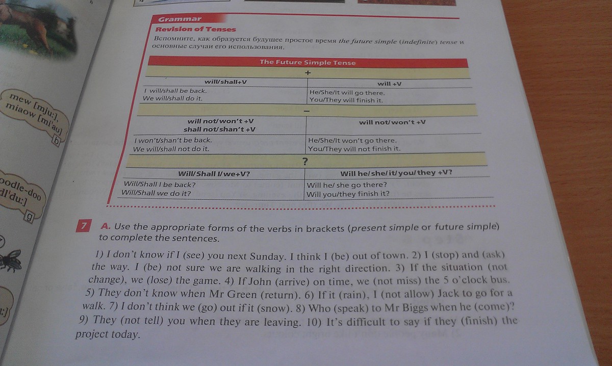 Помогите, пожалуйста, сделать два упражнения. Фото 1: Упражнение 7. Раскрыть скобки и поставить глаголы в нужную форму, пользуясь таблицей. Можно писать только номер предложения и глагол.