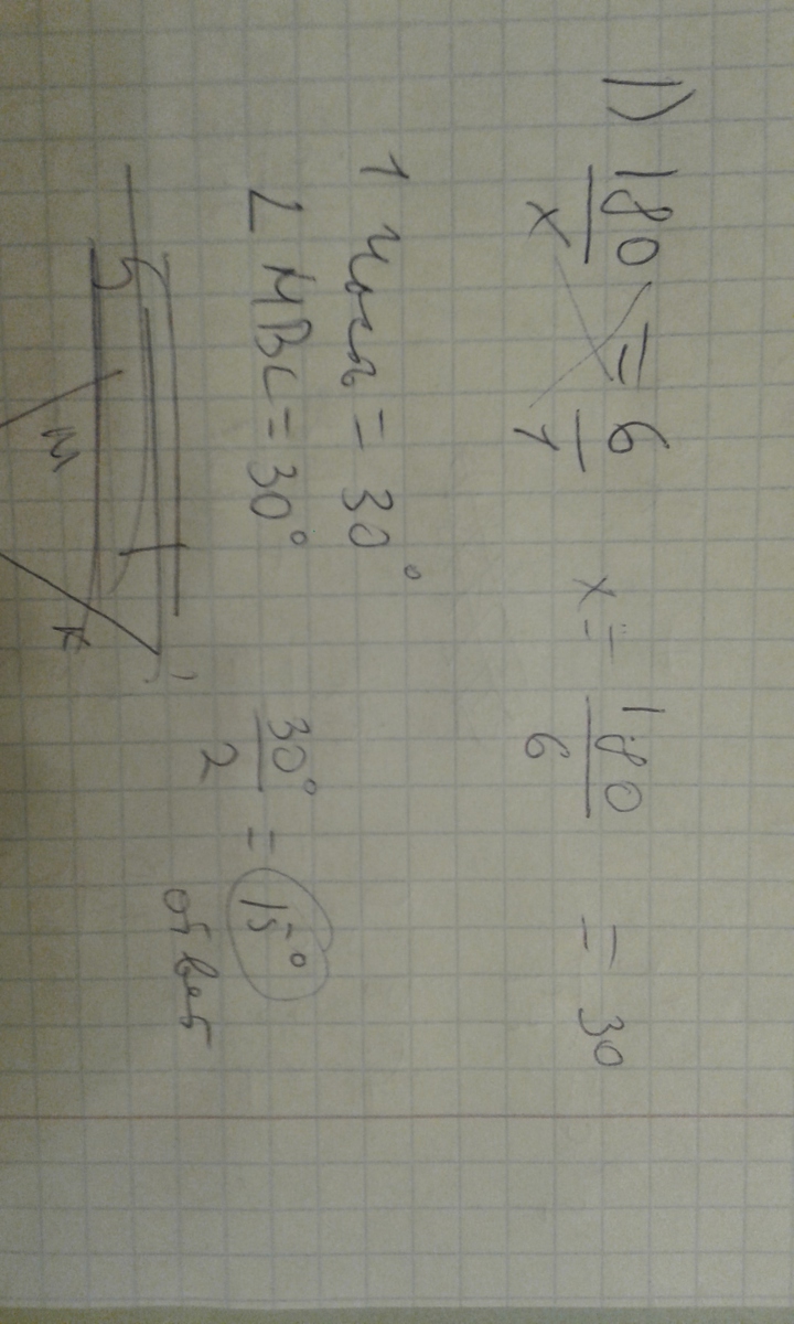 Луч BM делит развернутый угол ABC в отношении 5:1 от луча BA. найдите угол ABK если BK биссектриса угла MBC.