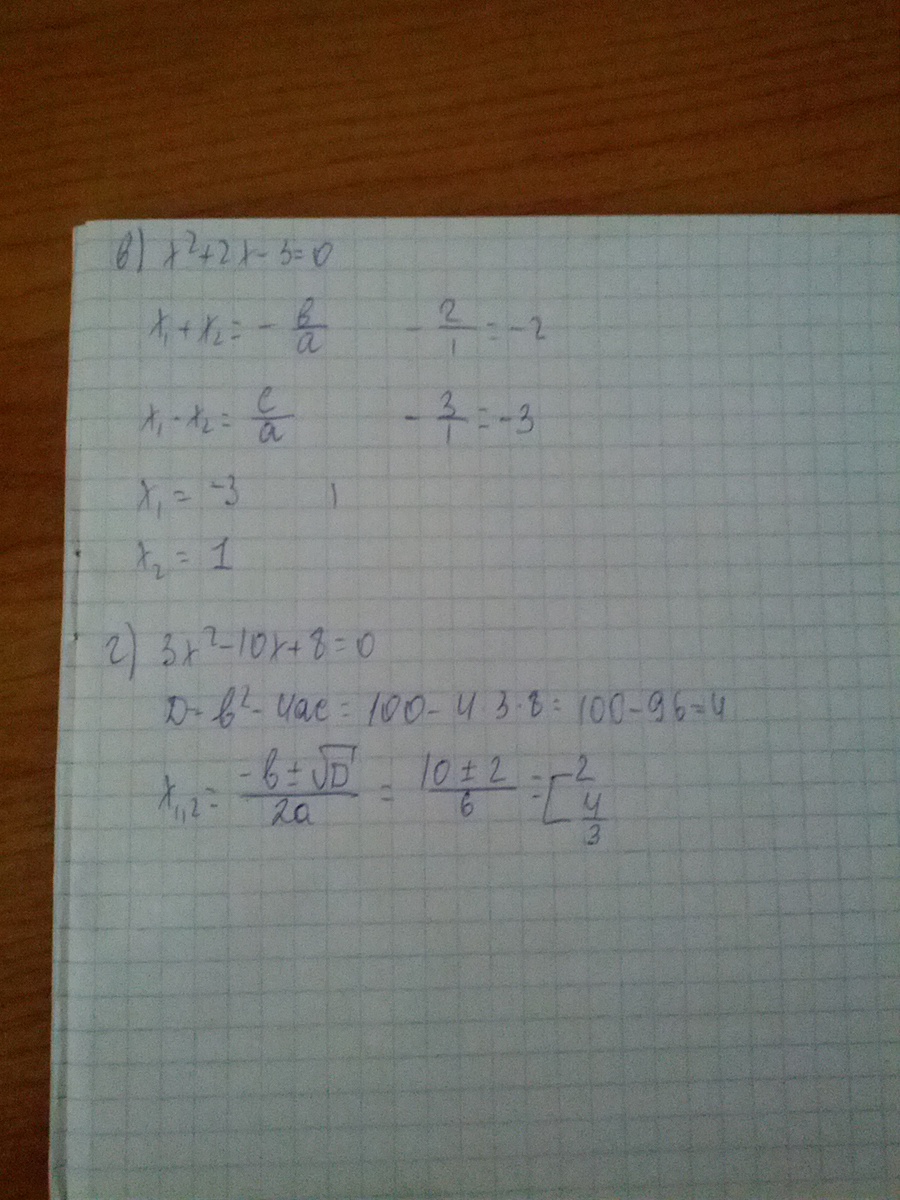 б)x^2+2x-8=0 а) б) в) решить по теореме Виета