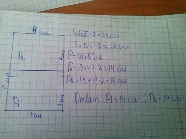 начерти прямоугльник, длина которого 6 см, а ширина 4см.Раздели его на два одинаковых прямоугльника. найди периметр каждого прямоугольника.рассмотри два случая.