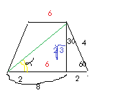 Высота трапеции по теореме Пифагора √(4²-2²)=√12=2√3