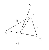 Из вершины большего угла треугольника к его плоскости проведен перпендикуляр ,равный 9 см.Определить расстояние от концов перпендикуляра до противолежащей стороны треуголника ,стороны коророго равны 15см,37см и 44см.
