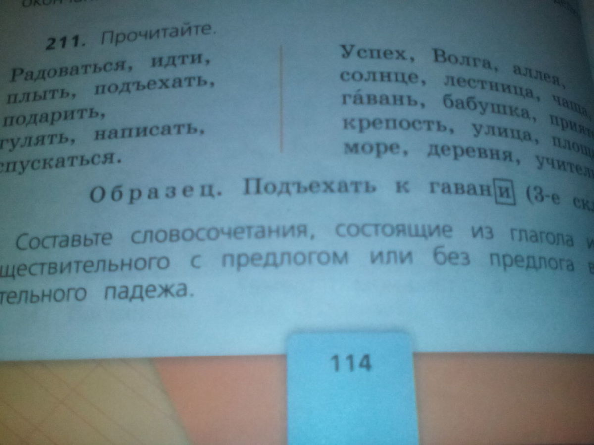 радоваться успеху , плыть по Волге, идти по аллее, подъехать гавани, подарить бабушке,
