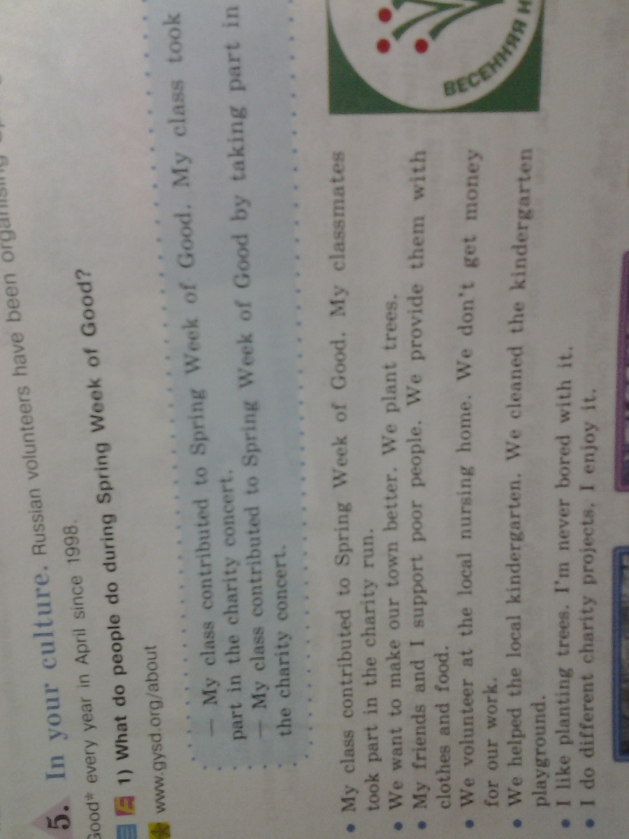 Мой класс внёс вклад в Весеннюю неделю доброты. Мой класс принял участие в благотоворительном концерте.
