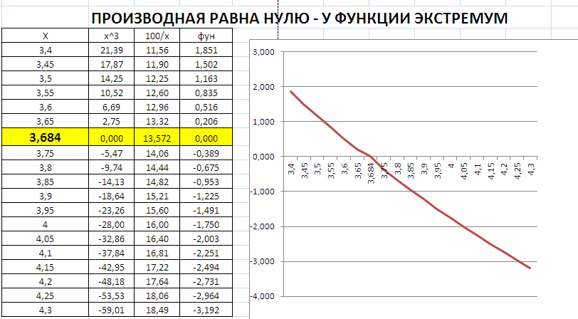 Максимум будет, когда производная равна 0. Решаем уравнение X^3=50 или Х=3,6840. Это и будет ответом.
