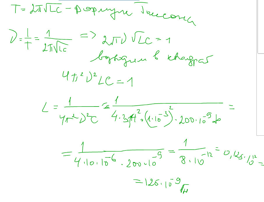Частота электрических колебаний в контуре равна 1 мгц. Если емкость конденсатора равна 200пф то индуктивность катушки равна?