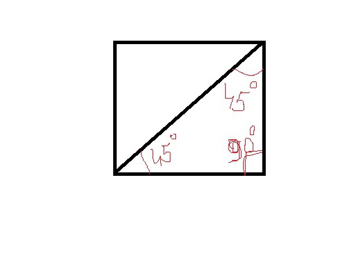 провести диагональ (сделала) , а вот как измерить угол между диагональю и стороной квадрата не знаю. Точнее не уверена что правильно делаю. У меня получилось 90* не понятно правильно или нет(((