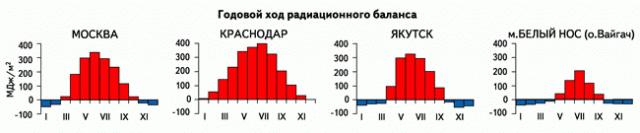 Используя карту атласа, определите величину радиационного баланса территории МОСКВЫ. Определите радиационный баланс в других пунктах, расположенный на данной широте. Сформируйте вывод.