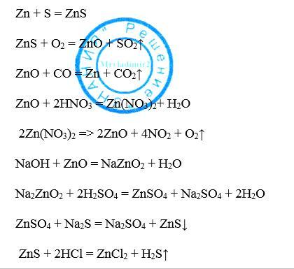 сульфид цинка> оксид цинка > цинк> нитрат цинка >оксид цинка >цинкат натрия >сульфат цинка >сульфид цинка >хлорид цинка