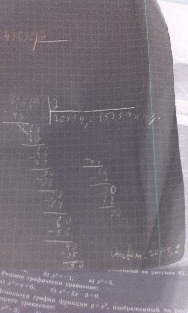 Делим столбиком, получается нужно 49:7 = 7, затем 6 : 7 , не делится пишем 0 и сносим 9, получается 69:7 = 9 и остаток 6,рядом ставим еще 6 и получается 66:7 = 9 и остаток 3