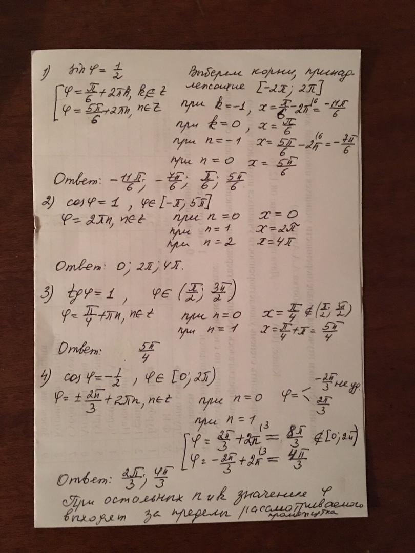 4)cos фи=-1/2, фи принадлежит [0;2п)