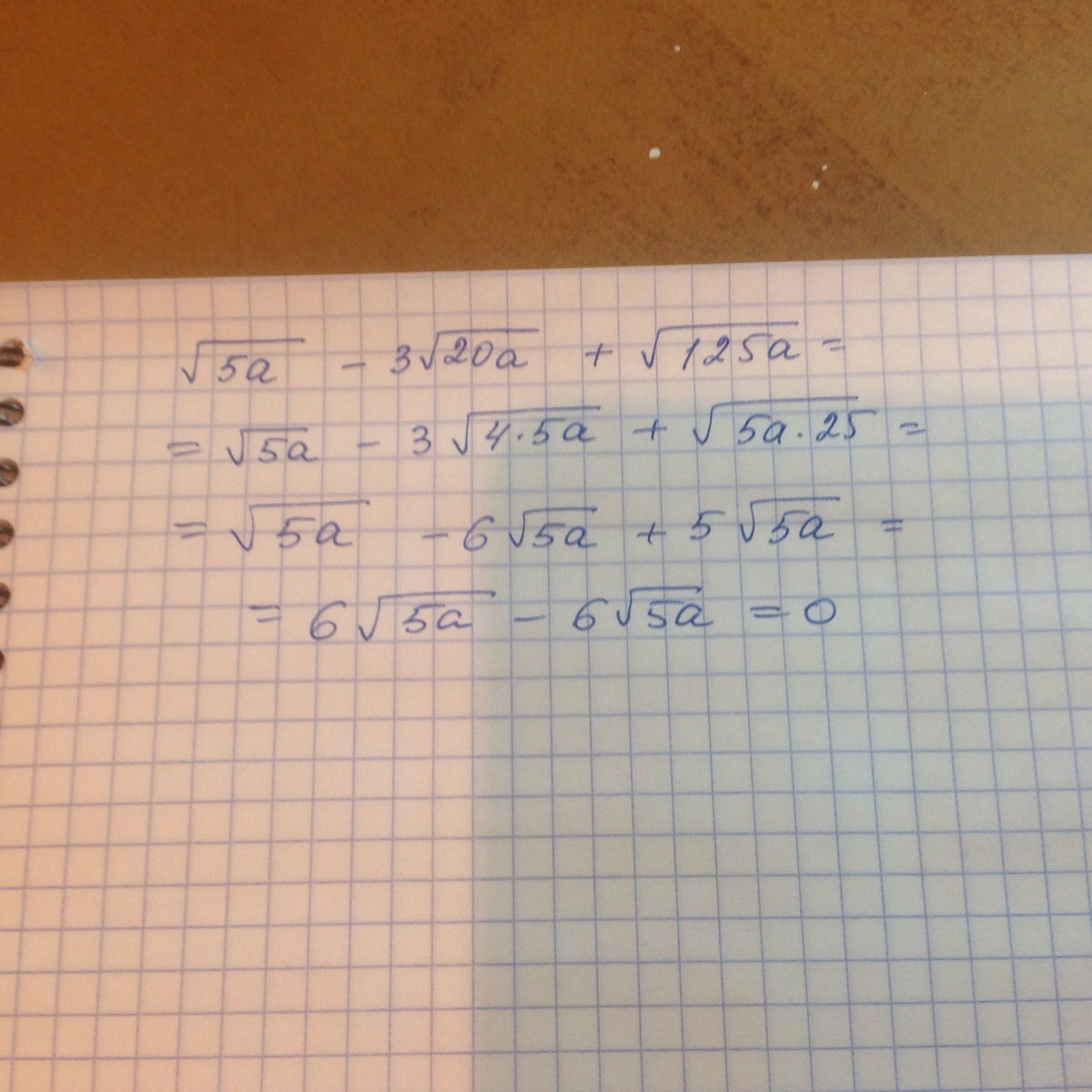 √5a-3√20a+√125a=√5a-6√5a-√5a=6√5a-√5a=0 Ответ 0