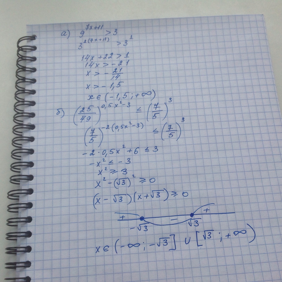 б)(25/49)^(0,5x^2-3)≤(7/5)^3