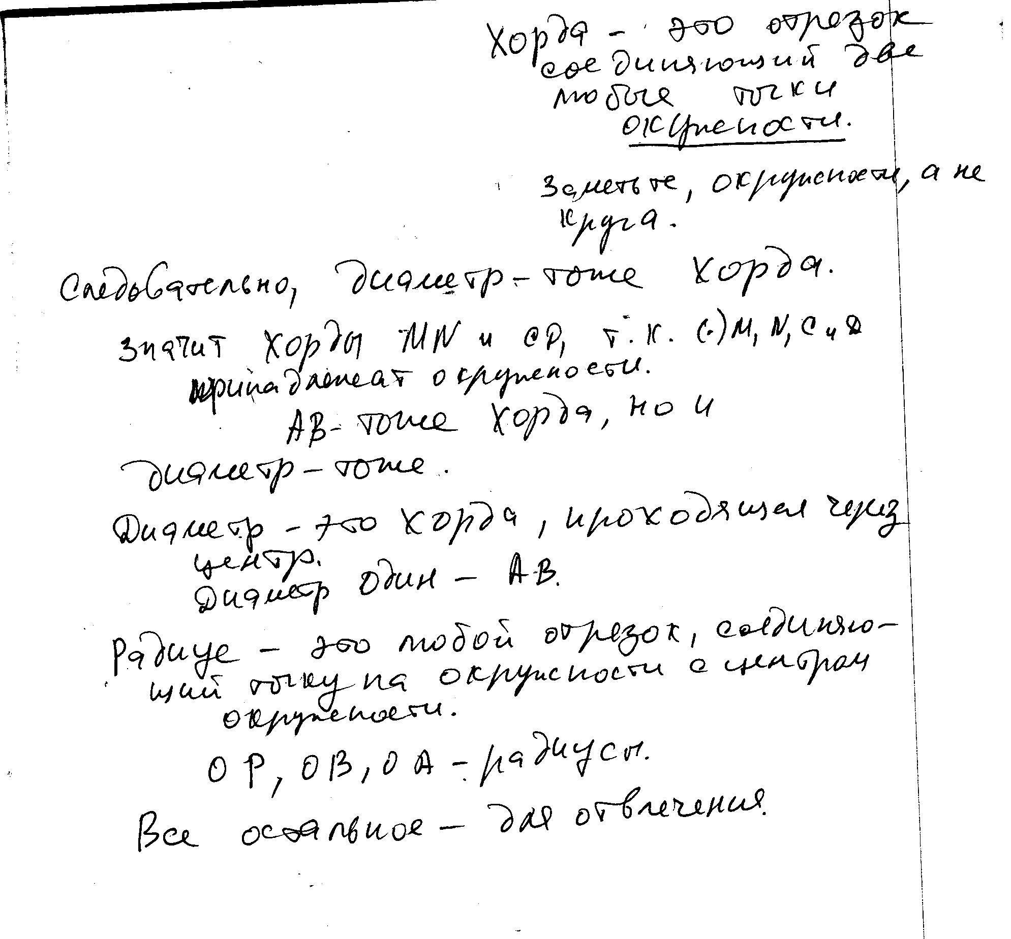 какие из отрезков, изображенных на рисунке 90, являются: а) хордами окружности; б) диаметрами окружности; в) радиусами окружности?