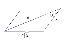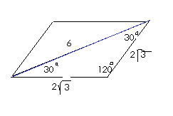 6²=(2√3)²+(4√3)²-2·2√3·4√3 ·cos α ⇒ 36=12+48-48·cosα⇒