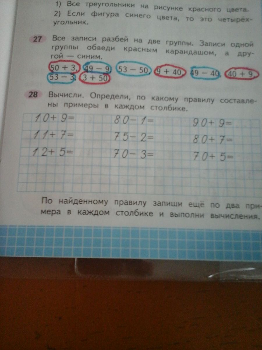 вычесли и определи по какому правилу составлены примеры в каждой столбике .По найденному правилу запиши ещё по два примера в каждом столбике и выполни вычисления