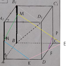 Если Е на продолжении ( как у меня на рисунке), то соединяем Е и К и получаем точку F- пересечения с ребром СD и точку Р - точку пересечения NE c ребром