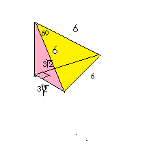 Розовый треугольник - тоже прямоугольный. один катет 3√2, гипотенуза 6. Значит второй катет тоже 3√2