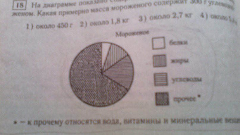 на диаграмме показано содержание питательных веществ в мороженом .Какая примерно масса мороженного содержит 300 грамм углеводов .