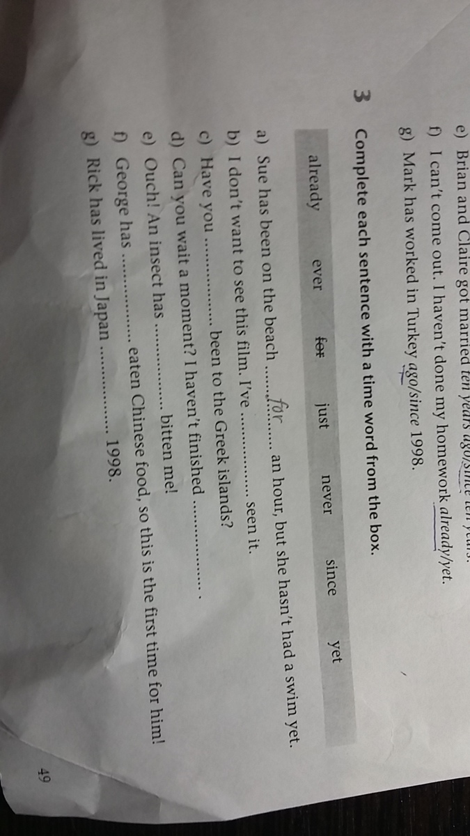 B)newer C)ever D)yet E)just F) since G)for пожайлуста