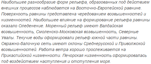 В пределах какой их крупных равнин России отмечается наибольшее разнообразие форм рельефа, образованных под действием внешних процессов? Почему?