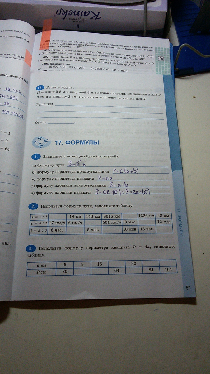 1) 8м * 6м = 80 дм * 60 дм = 4800 кв. дм площадь пола