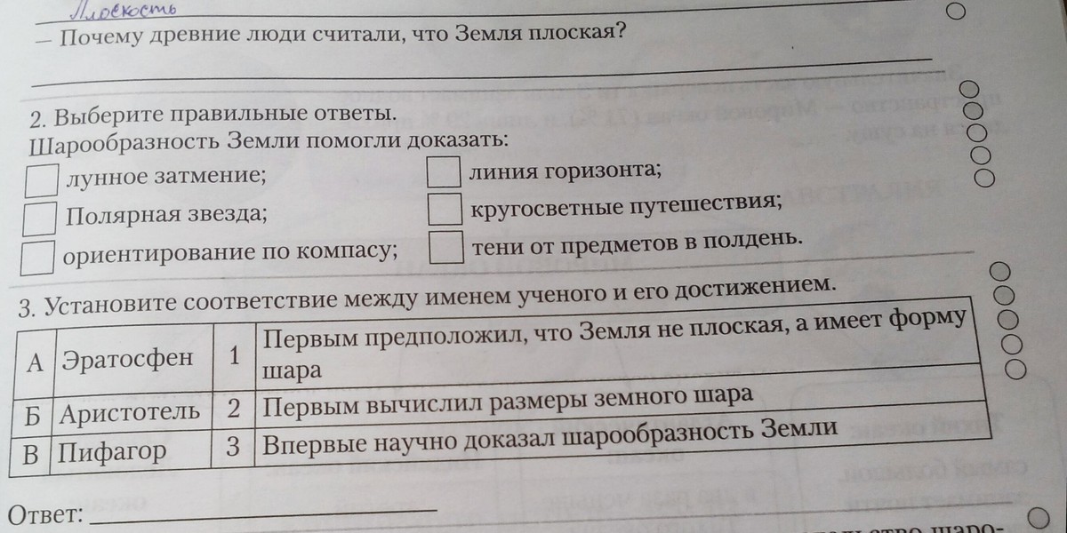 ответь на вопрос :почему древние люди считали, что Земля плоская?