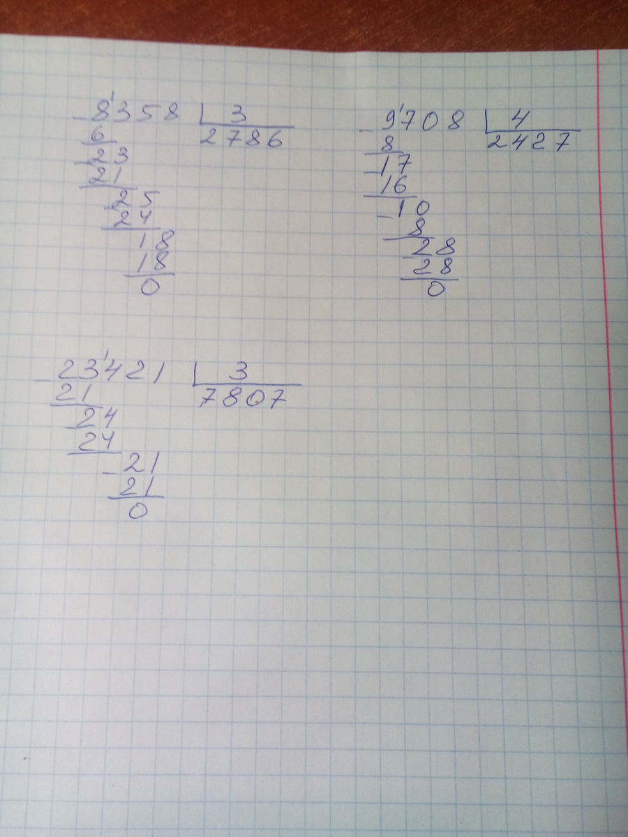 Привет мне нужна помощь . За решение дам 40 балов ... ЗАРАНЕЕ ОГРОМНОЕ СПАСИБО ... 8358:3 9708:4. 23421:3. ВСЕ УГОЛКОМ