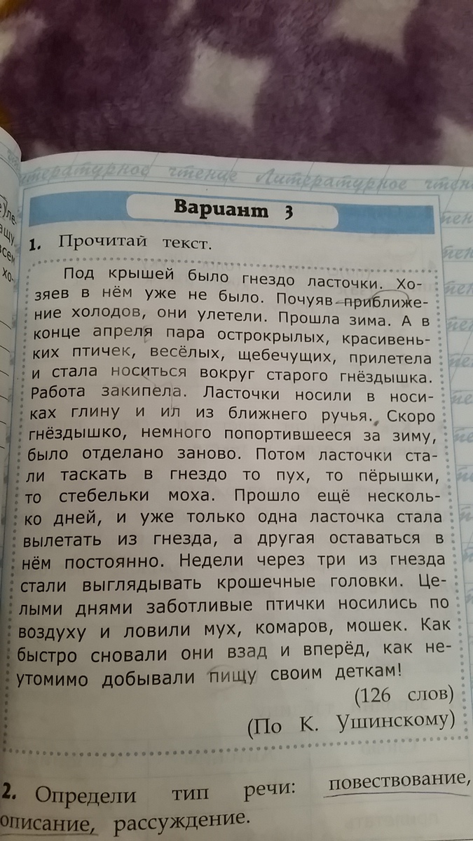 Это скорей всего повествование. т.к. в этом рассказе повествуют нам о ласточках