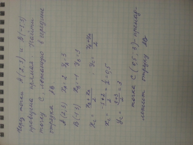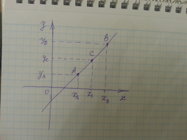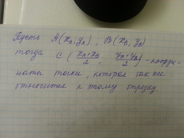 Рассмотрим точку М(х0;у0)-середину отрезка АВ,т.к.М∈[AB]⇒M∈(AB)