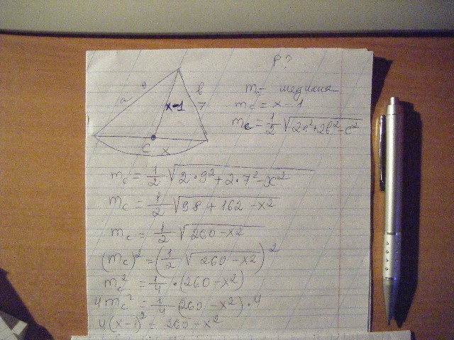 две стороны треугольника 7 и 9. Медиана , проведенная к третьей стороне , на 1 меньше этой стороны. Найти периметр