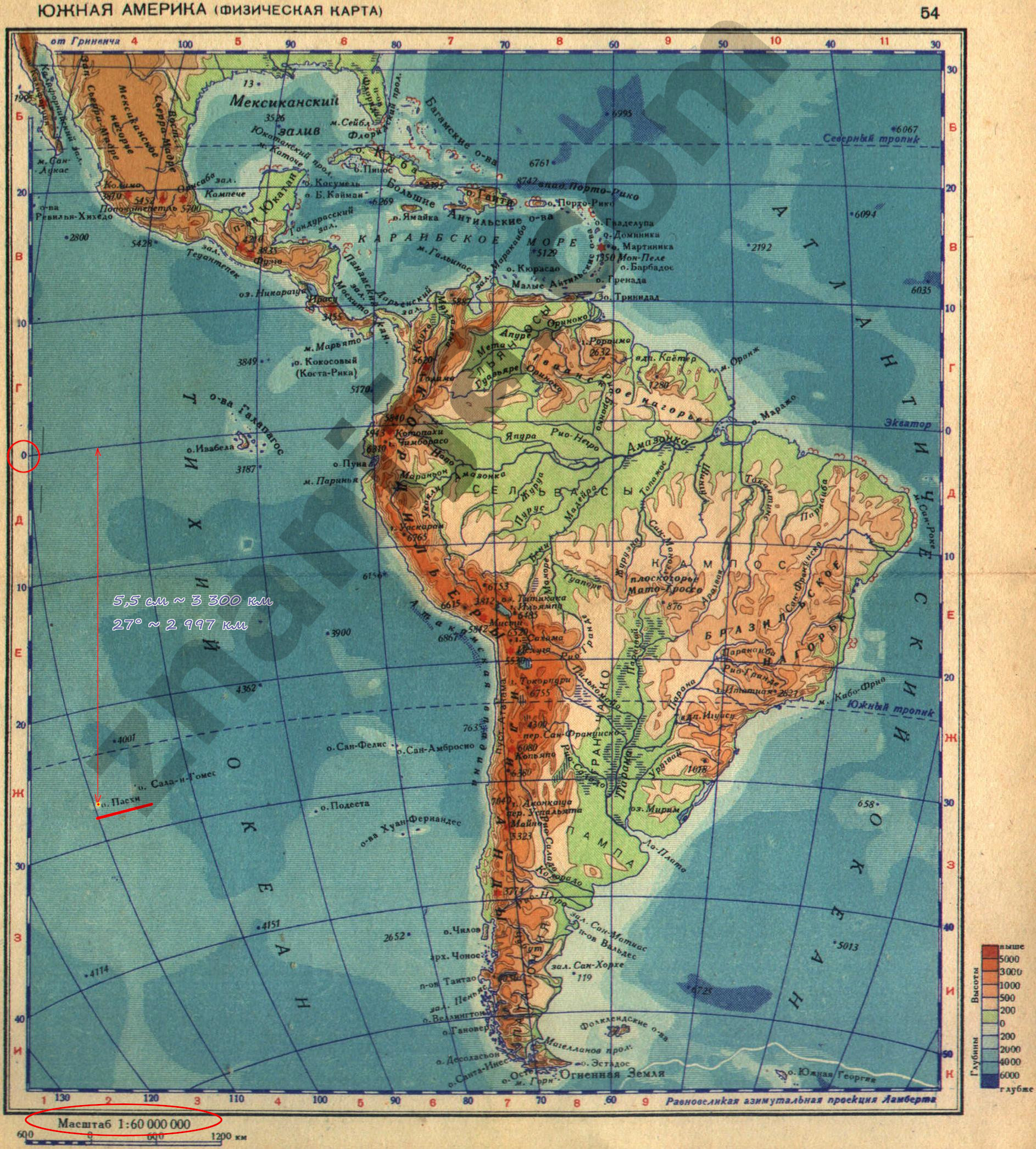 Определите кратчайшее расстояние от острова Пасхи до экватора при помощи:
