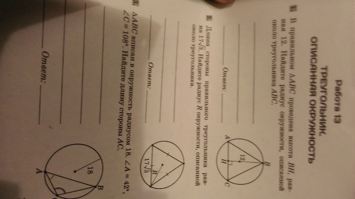 Использованы формулы радиуса окружности, описанной около правильного треугольника