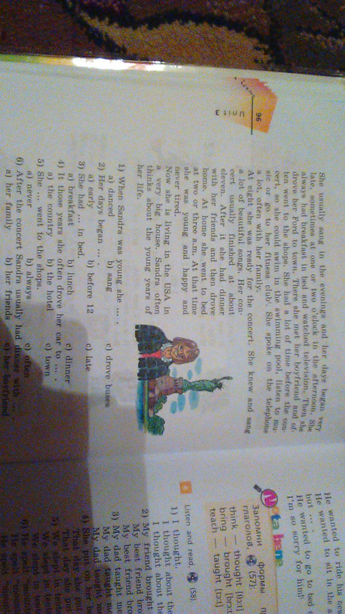 В 8 она была готова к концерту. Она знала и пела много красивых песен. Ее концерт обычно заканчивался около 11. После этого она ужинала со своими друзьями и затем ехала домой. Дома она ложилась спать в 2 или 3 утра. В это время она была молодой, счастливой и никогда не уставала.