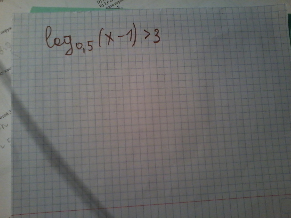 log0,5(x-1)>log0,5(0,125). Основание логарифмов меньше 1, такая функция функция убывающая⇒х-1<0,125 ;x-1>0