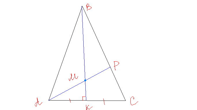 M-точка пересечения медиан, где они делятся 2:1, считая от вершины, тогда