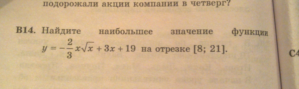 y =-2/3 x√x +3x+19 на отрезке [ 8 ; 21 ]