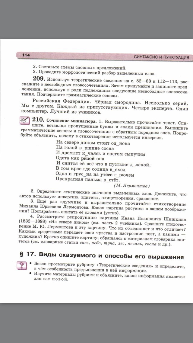3.Рисуется картина одинокостоящей сосны на утесе. Стоит вся в белом пухе зимы и мечтает: как она стоит только в пустыне, где жарко.Но этому не быть.