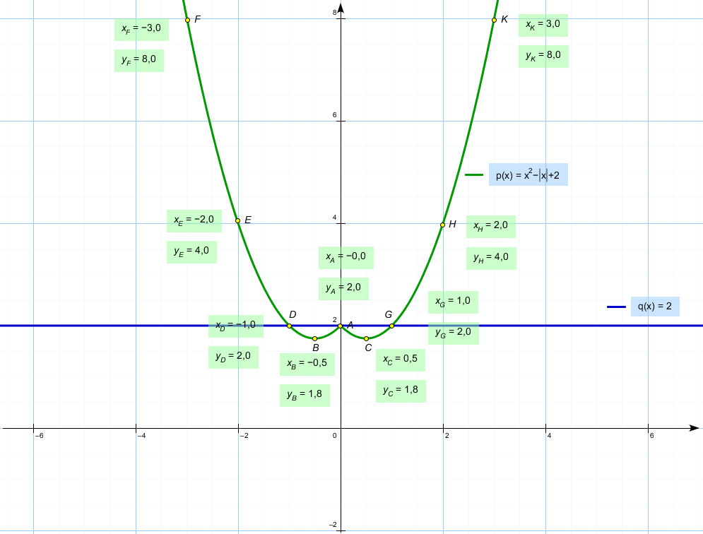 Из графика видно, что прямая у=а будет иметь с графиком ровно две точки при a > 2