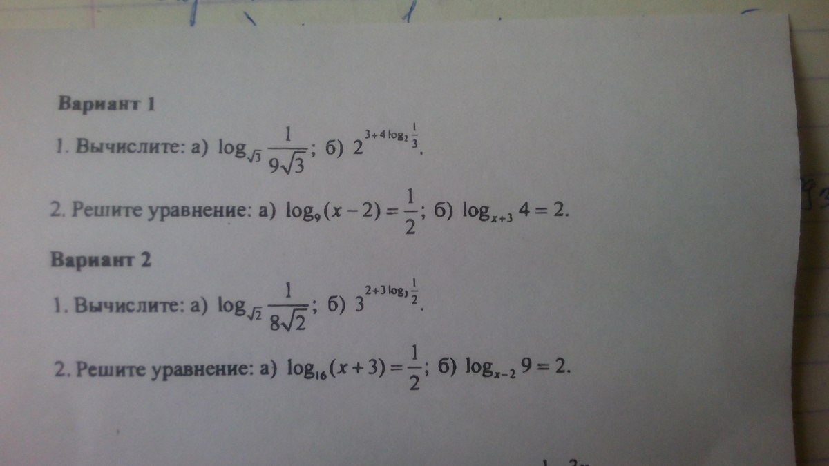Решить логарифмические уравнения. Вариант 1: номер 1: пункт б). Вариант 2: номер 1: пункт б) (С решением)