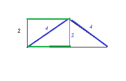 Равнобедренный треугольник, образованный диагональю и боковой стороной. Высота этого треугольника равна 2 и является одновременной медианой основания.