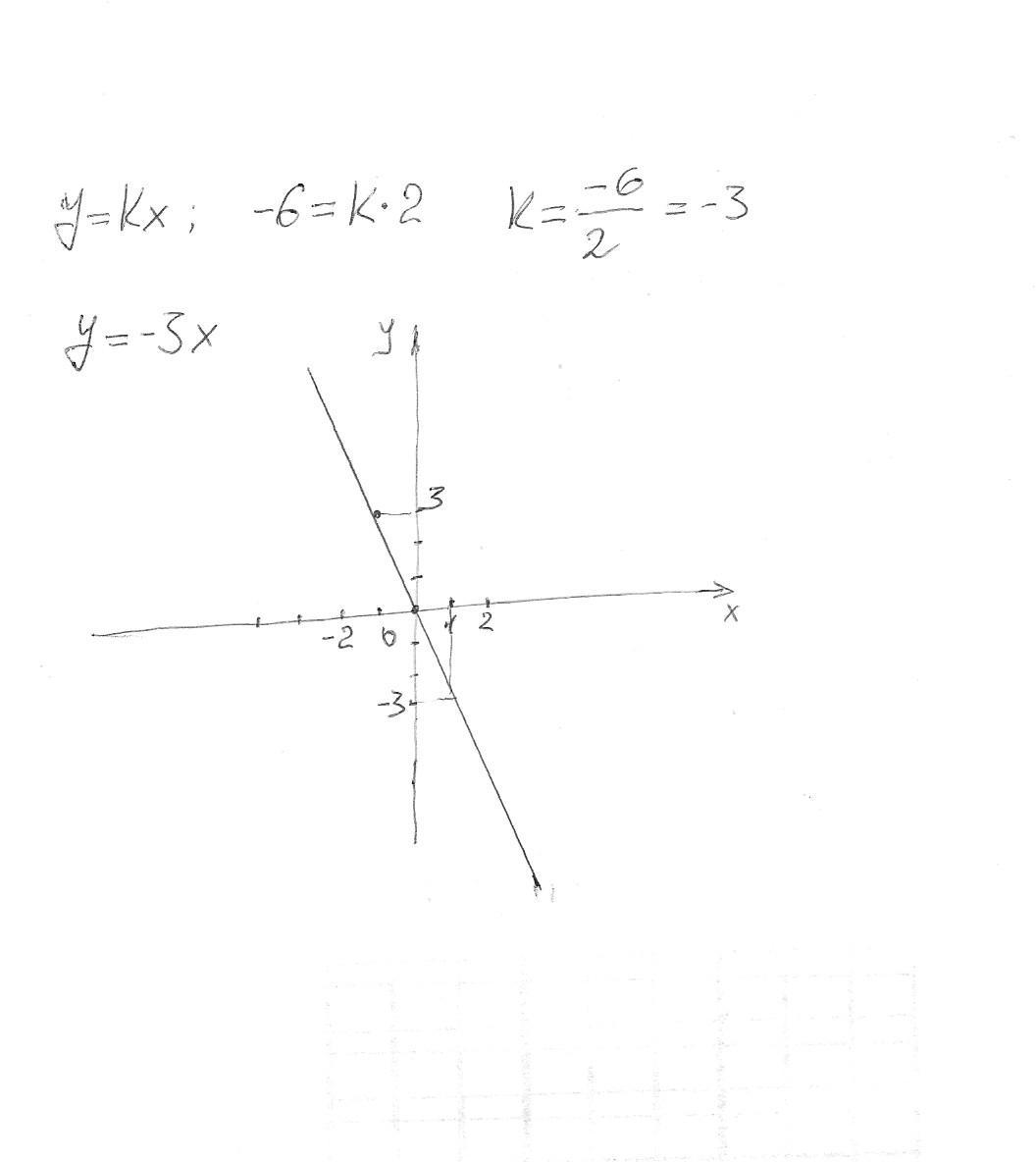 График функции у=Кх проходит через точку А(2;-6).Найти угловой коэффициент к и построить график этой функции.С Графиком(вы должны не только решить ну и начертить график)