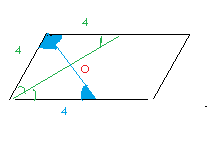 S (ромба)=4·4·sinα=16 sin α ⇒ S (Δ AOB)=1/4· S( ромба)= 4 sinα