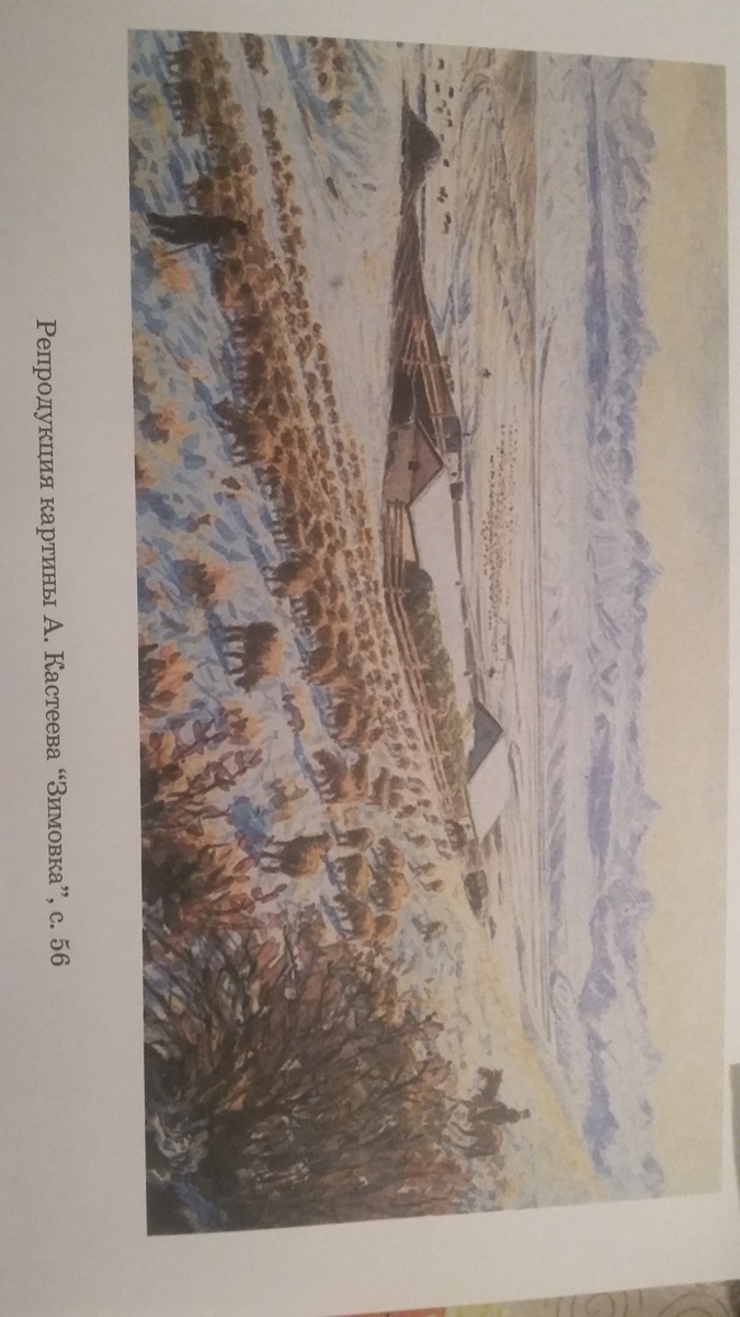на картине Кастеевой "Зимовка", мы можем наблюдать зимний пейзаж.