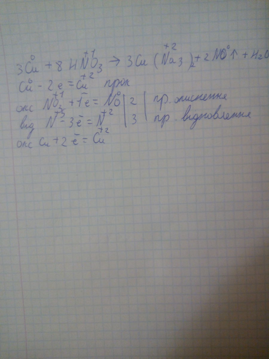 3Сu + 8HNO3 = 3Cu(NO3)2 + 2NO + 4H2O